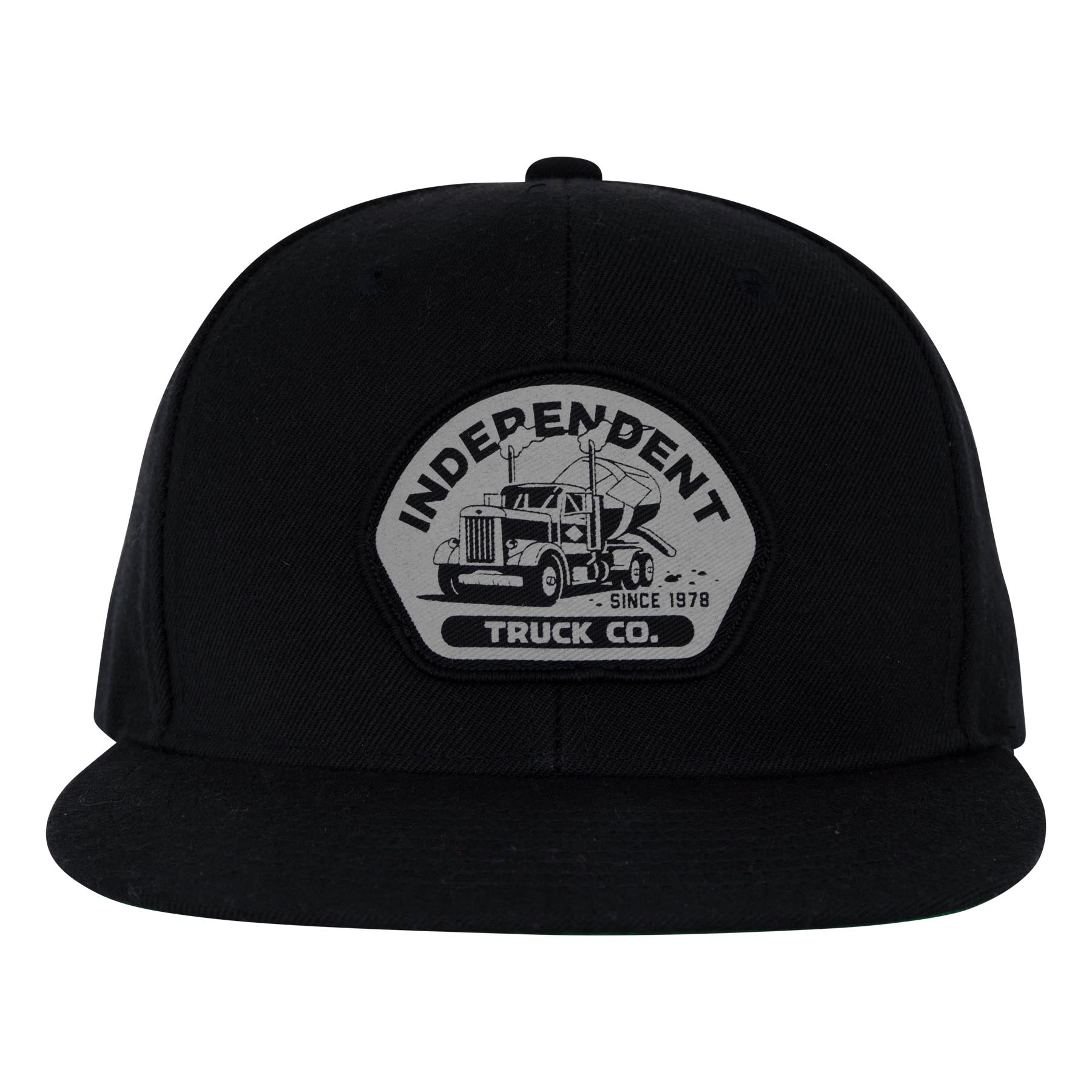 The Independent Trucking high-profile fit, structured 6 panel, flat brim snapback hat features contrast underbill, and woven patch with direct "faux" merrowed edge at front.