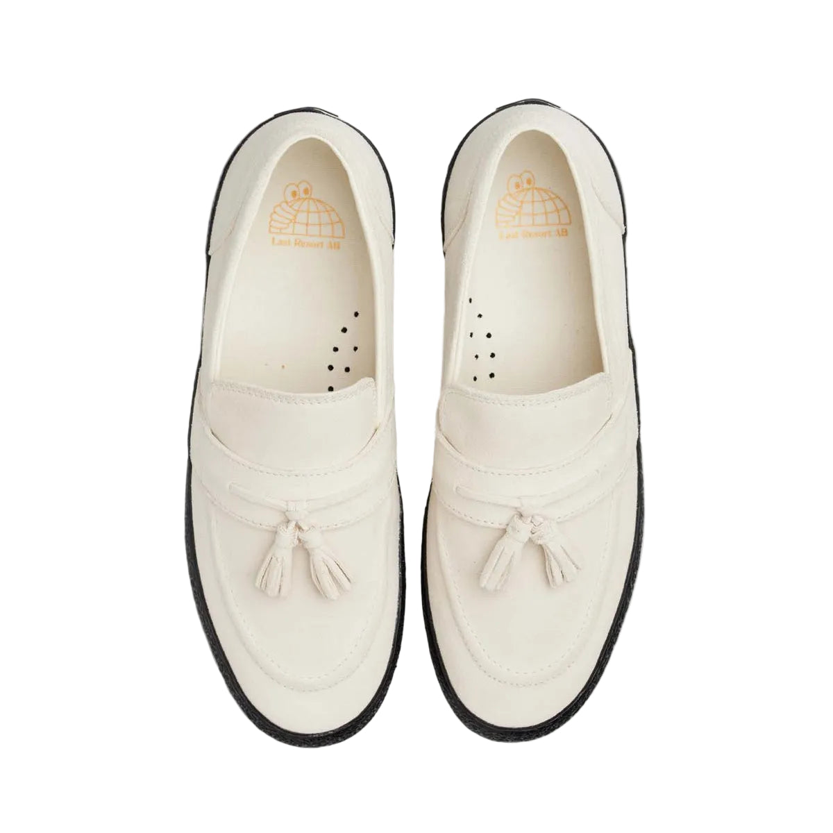 The VM005 is our take on a slip-on style—a hybrid between the VM002 and a classic loafer. This version comes in White with a Black sole, and features a suede upper, tassel detail, and our signature “Cloudy Cush” insole for comfort and support.
