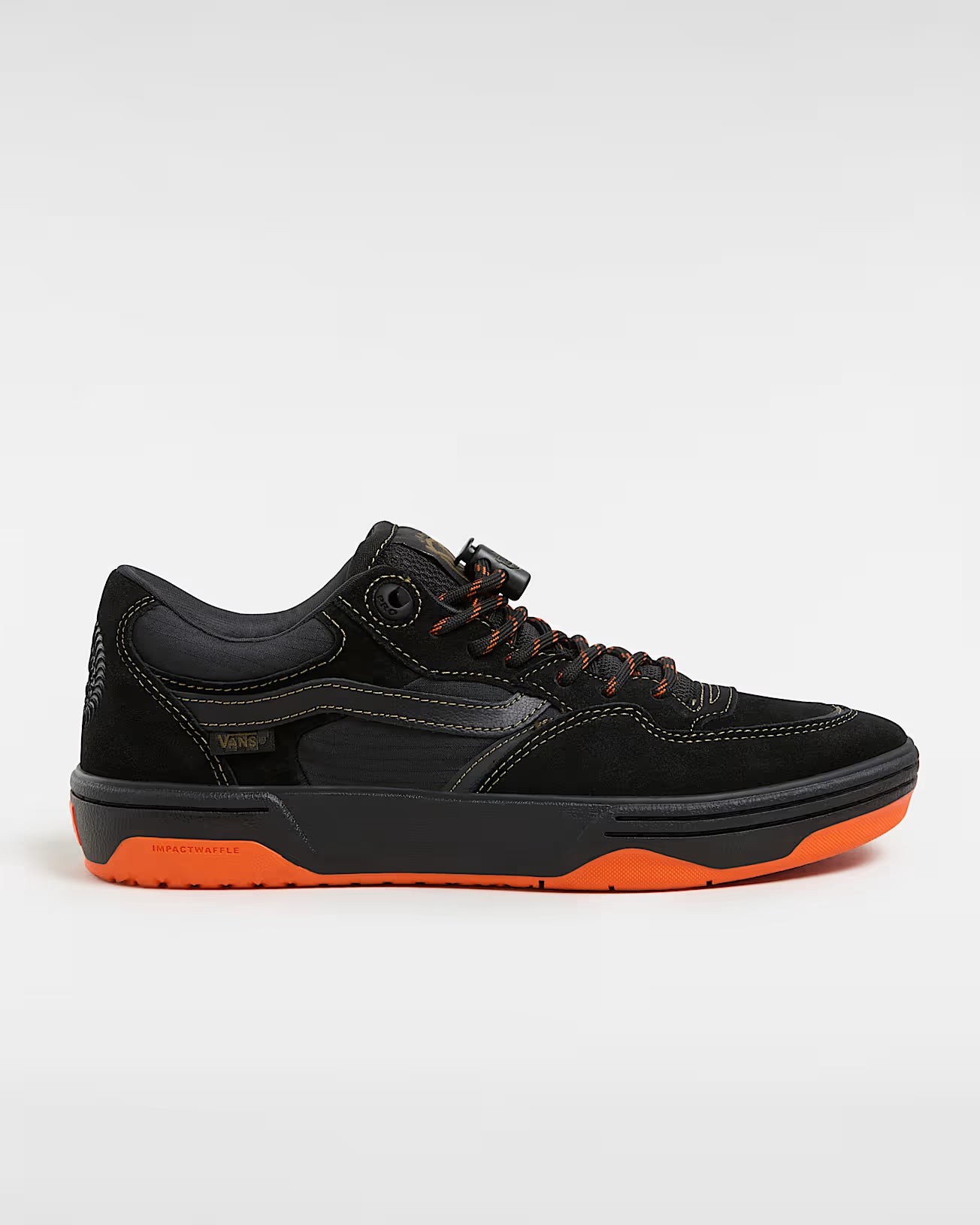 Founded in San Francisco, CA in 1987, Spitfire Wheels are the #1 wheel in skateboarding. Known for high-quality urethane, a world-class team, and their dedication to supporting local skate scenes and communities globally. This season, Vans Skateboarding reunites with Spitfire to deliver a fresh collection inspired by unforgettable skate trips with the crew. With Spitfire Wheels’ history of pushing progression, it’s no wonder that they wanted to offer their unique twist on Rowan Zorilla’s second signature skate shoe, the Rowan 2. With a refined shape inspired by vintage court shoes, an upgraded feel with more underfoot protection, and ImpactWaffle technology—Vans Skateboarding’s most impact-cushioning outsole design yet—the Rowan 2 X Spitfire lets you turn even your best performance up a notch. Add in durable Ripstop, water-repellent coating, and sustainability-conscious materials in Spitfire’s iconic black and orange colorway, and the Rowan 2 makes an impact anywhere you go. The Rowan 2 qualifies for Vans’ VR3 Checkerboard Globe Logo. The Vans VR3 designation follows strict material guidelines with one or a combination of regenerative, responsibly sourced renewable, and recycled materials making up at least 30% of the product. • Vans X Spitfire Wheels Collection • NEXT LEVEL IMPACT PROTECTION – Blending sustainability with performance, the Rowan 2 outsole is made of SickStick™ rubber combined with a dual-density VR3Cush™ midsole construction with a zonal ImpactWaffle™ design that focuses on additional impact support while maintaining boardfeel. • RECYCLED SOCKLINER – Additional comfort has been added on top of a molded midsole made of 98% recycled materials. • REFINED FIT – An underfoot contour offers additional comfort while improving performance, combined with our tongue-centering straps for a locked-in fit. • UNRIVALED DURABILITY – This easy-to-wear, vintage court-inspired skate shoe has visible DURACAP™ suede panels reinforced with recycled rubber for added durability and color pop, and molded eyelets for lace protection. • SUSTAINABILITY-CONSCIOUS MATERIALS – The Rowan 2 is made with recycled and natural materials, including leather, suede, organic cotton, and recycled polyester. By purchasing this product, you are supporting Leather Working Group certified tanneries. Learn more at Leatherworkinggroup.com. To learn more about Vans® and their journey to sustainable materials, please go to vans.com/sustainability.