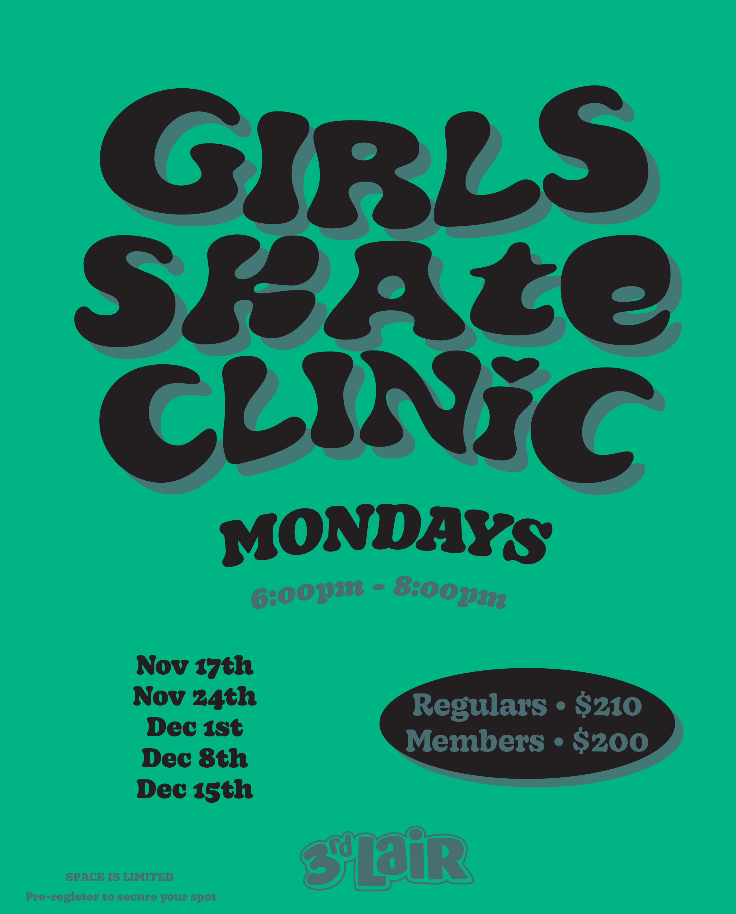 This weekly instructional skateboarding program is for girls and women and will run very similar to our morning skateboard camps offered when school is out. The program is open to skateboarders of all ages and ability levels. Riders will be split into small groups based on experience first, age second. For your reference: